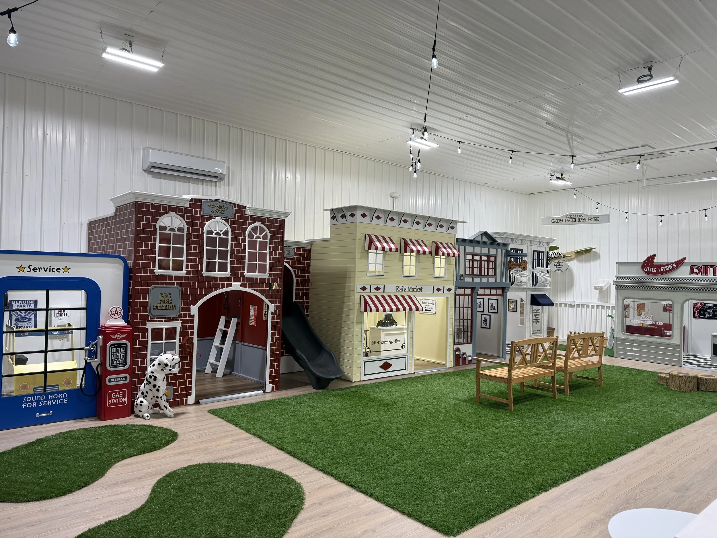 Our play space is designed for ages 6 months to 8 years. There is no age cap on the fun!
